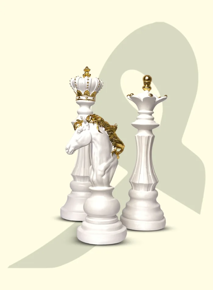 Chess Pieces Decorative Sculptures – White & Gold Collection