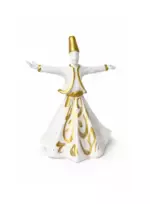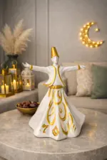 Designed in a refined white finish with luxurious gold detailing, each figurine captures the graceful movement and symbolism of the whirling dervish. The flowing robe and open arms represent harmony, peace, and spiritual elevation.