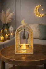 Each lantern features intricate geometric cutwork and a soft LED candle glow, bringing elegance and warmth to your Ramadan décor. The hanging tassel adds a refined traditional touch, perfect for majlis styling, console tables, coffee tables, or Ramadan corners.