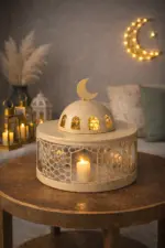 Add refined Ramadan charm to your home with the Noor Dome Decorative Box. Inspired by Islamic dome architecture and crowned with a crescent moon, this beautifully designed piece blends tradition with modern elegance.